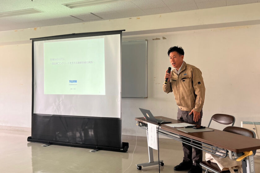 倉田常務は【現場DXのリアル-高品質コンクリート施工を支える最新技術の実践】と題し、コンクリート打設における品質確保を目的に、AI・クラウド・ARを活用したDX化の取り組みを紹介し、その最新事例を解説しました。